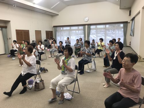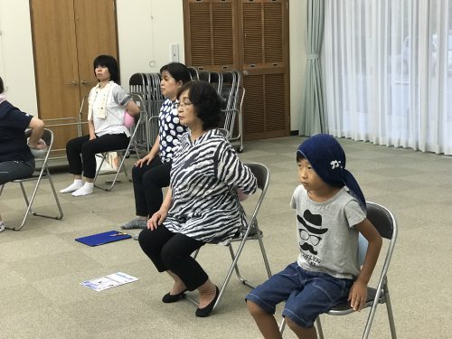 こちらに参加してくださっている方は、大垣市の川並地区センターに隣接している障害をお持ちの方を対象にした施設に通所または入所されている方のご家族、また、近隣にお住まいの皆様です。夏休みな今日は、若いおばあちゃんと一緒にお子さんも来てくださいました。