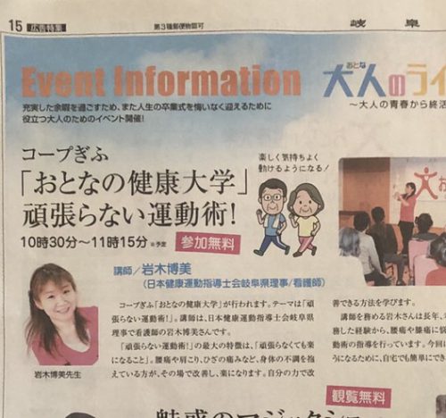 岐阜新聞主催3月29日大人フェアーで頑張らない運動術✨/岐阜/介護予防運動・サンライトフィットネス