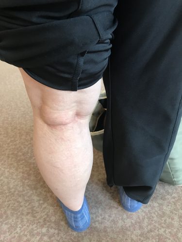 膝の裏に痛みがあり、触ると大きな腫れがありました。