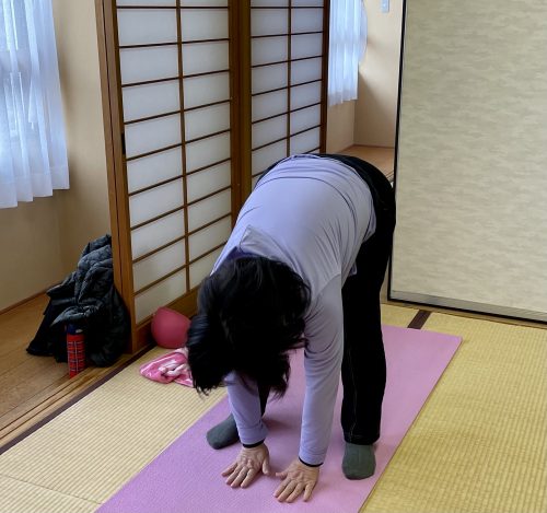 「それが今はね。あちこち痛かったのもほんとに良くなって、ここに来れた事を本当に感謝しているの。今では、ここまで柔らかくなったのよ。両手がペタンと床につくくらい」
