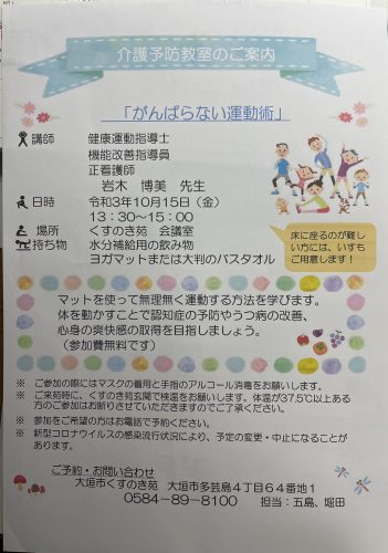 大垣市社会福祉事業団様で頑張らない運動術/岐阜/介護予防運動・サンライトミー・サンライトフィットネス