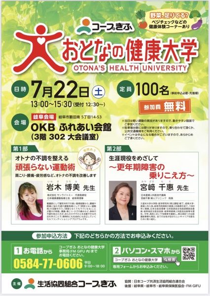 7月22日岐阜市OKBふれあい会館で「大人の健康大学セミナー」が開催されました。